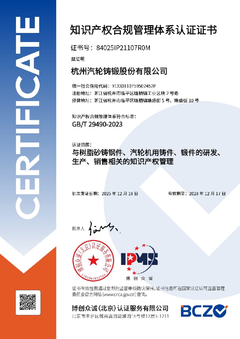 杭州汽轮铸锻股份有限公司-IPMS证书